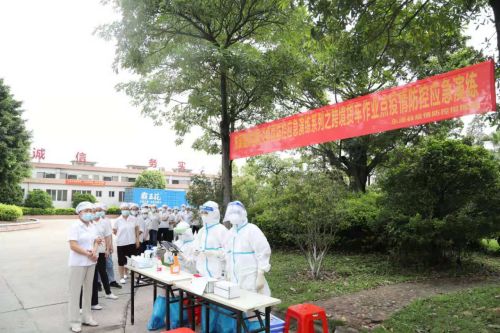 6月27日上午,由東源縣疫情防控指揮部主辦,東源縣衛生健康局、東源縣工業商務和信息化局、東源縣工業開發區管理委員會承辦的“新冠肺炎疫情防控應急演練”在蝴蝶嶺工業園區舉行,廣東霸王花食品有限公司員工約50人參加了此次演練活動。