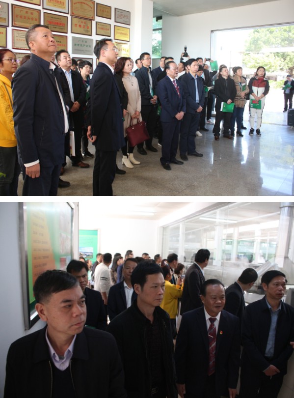 12月13日上午,省農業農村廳鄉村產業發展處四級調研員李二華、二級主任科員練建軍與來自山西、遼寧等19個省市的國龍企業代表在市農業農村局葉發興局長、東源縣王藍天常委的陪同下蒞臨我司參觀考察,由集團董事長朱日楊、執行總裁朱榮業陪同接待。